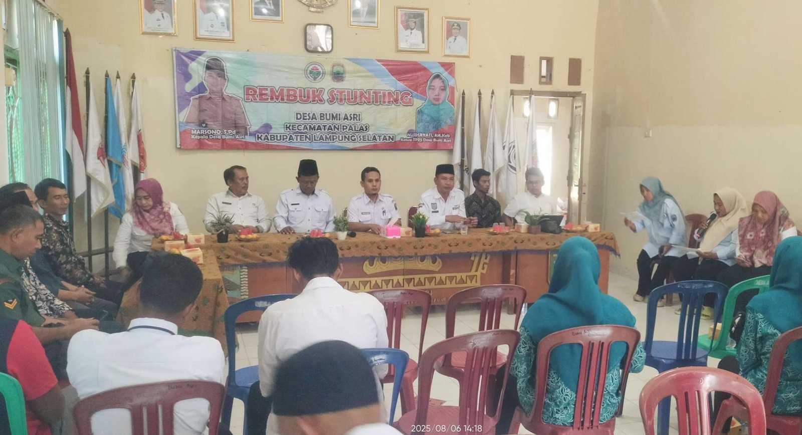 EXSPOST.ID — Pemerintah Desa Bumi Asri, Kecamatan Palas, Kabupaten Lampung Selatan menggelar kegiatan Rembuk Stunting Tahun 2025 pada Rabu, 6 Agustus 2025, bertempat di Kantor Desa Bumi Asri.